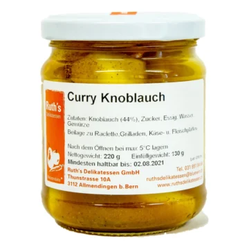 Curry-Knoblauch ist der Renner aus dem Sortiment von Ruth’s Delikatessen. Passt herrlich zu Raclette, Fondue und Grilladen – unbedingt probieren!