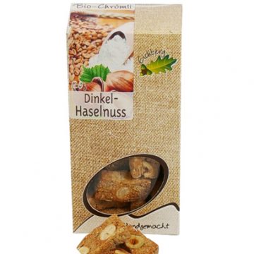 Dinkel und Haselnüsse kombiniert zu einem knusprigen und geschmackvollen Chrömli – der pure Knabberspass!