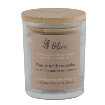 Duftkerze aus Olivenwachs – Weihrauchharz Zeder