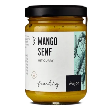 Diese Senf Spezialität mit ihrem fruchtig-würzigen Mango Geschmack gehört zu unseren feinen Senfen. Er ist der Geheimtipp für viele Rezepte und ein Muss für alle, die ihren Rezepten gerne das besondere Etwas durch eine fruchtige Note verfeinern. Verfeinert mit würzigem Curry überzeugt er durch seinen würzig-fruchtigen Charakter und passt hervorragend zu exotischen Gerichten. Nutzen Sie ihn als leckeren Begleiter Ihrer Salate und kreieren Sie würzig-fruchtige Salatdressings. Nicht zu vergessen als fruchtiger Dip zu einer Käseplatte oder zu Fleisch und Fisch. Auch lecker: zu Gegrilltem.
