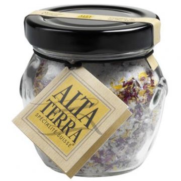 Liebliche Bio Korn- und Bio Ringelblumen aus dem Berner Oberland verleihen dieser Gourmet-Alpensalz Spezialität einen bunten Farbtupfer.