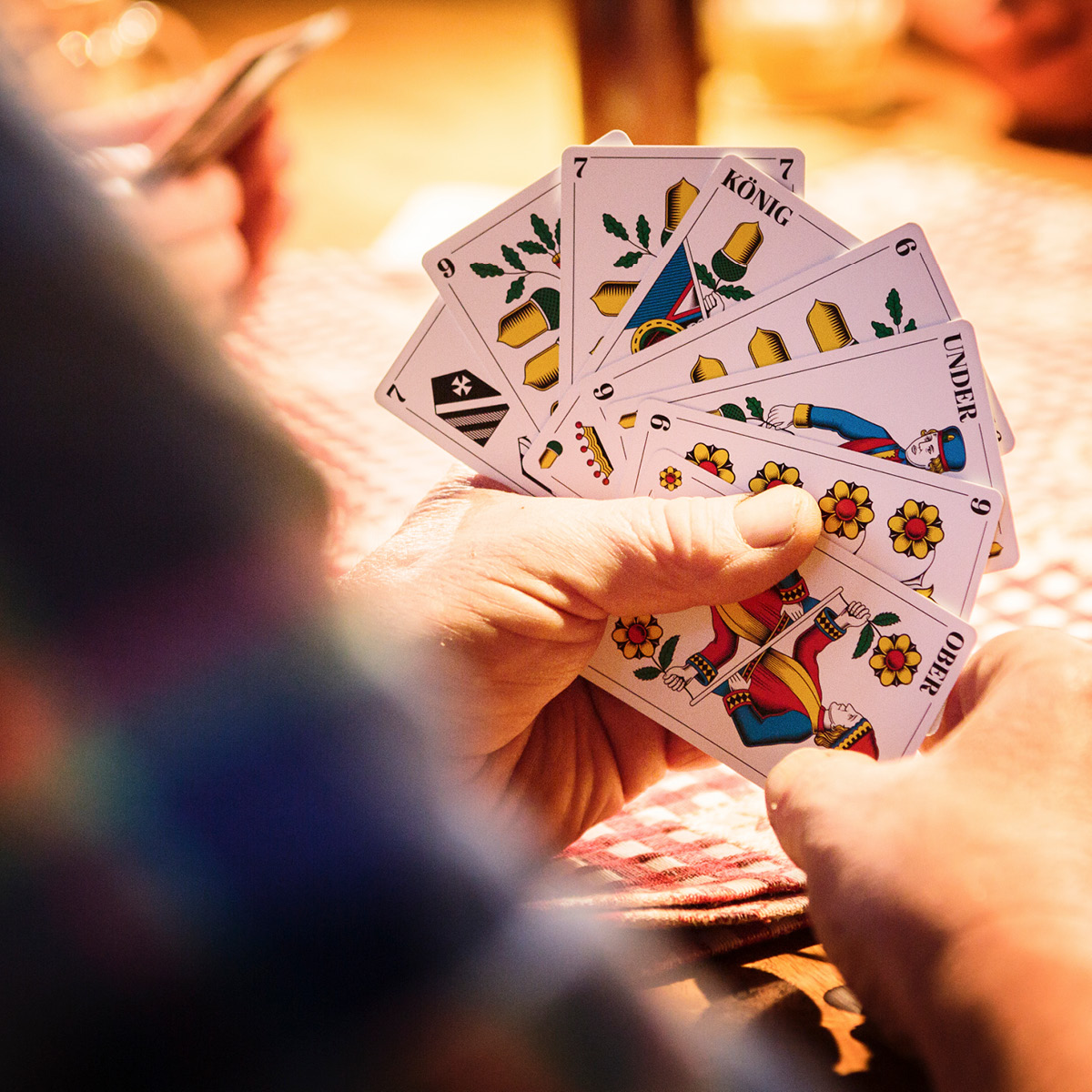 Wenn der Schellen-Bauer das Schilten-Ass sticht und der Eichel-König den Ober abfängt, dann sind Schweizer Kultfiguren am Werk. Der Jass. Ein Spiel, made in Switzerland. Und das seit über 500 Jahren.
