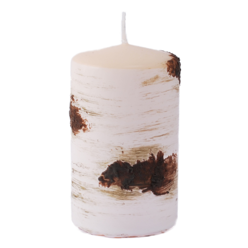 – Teelichthalter mit Birkenherz, Dekoband und Filzmotiv