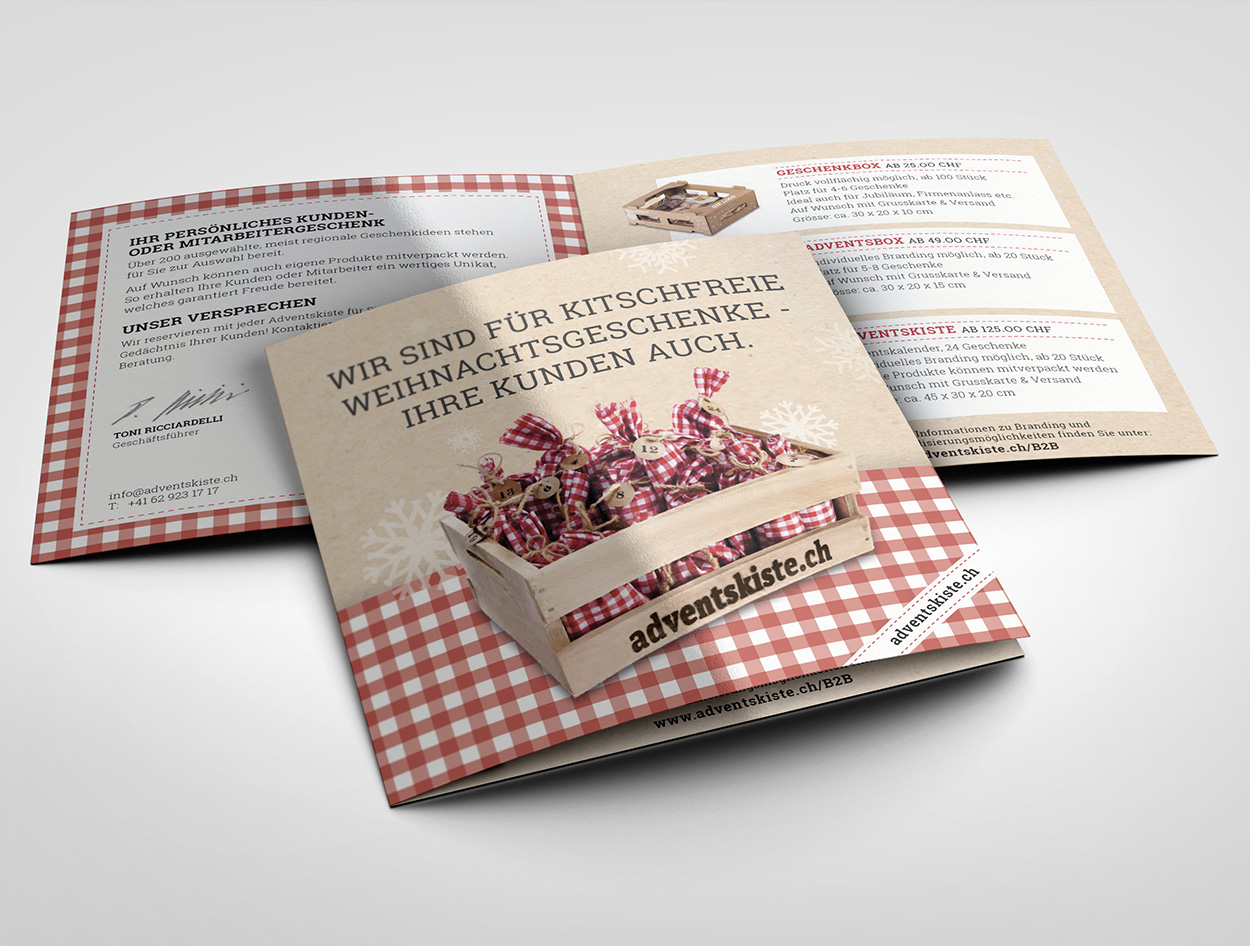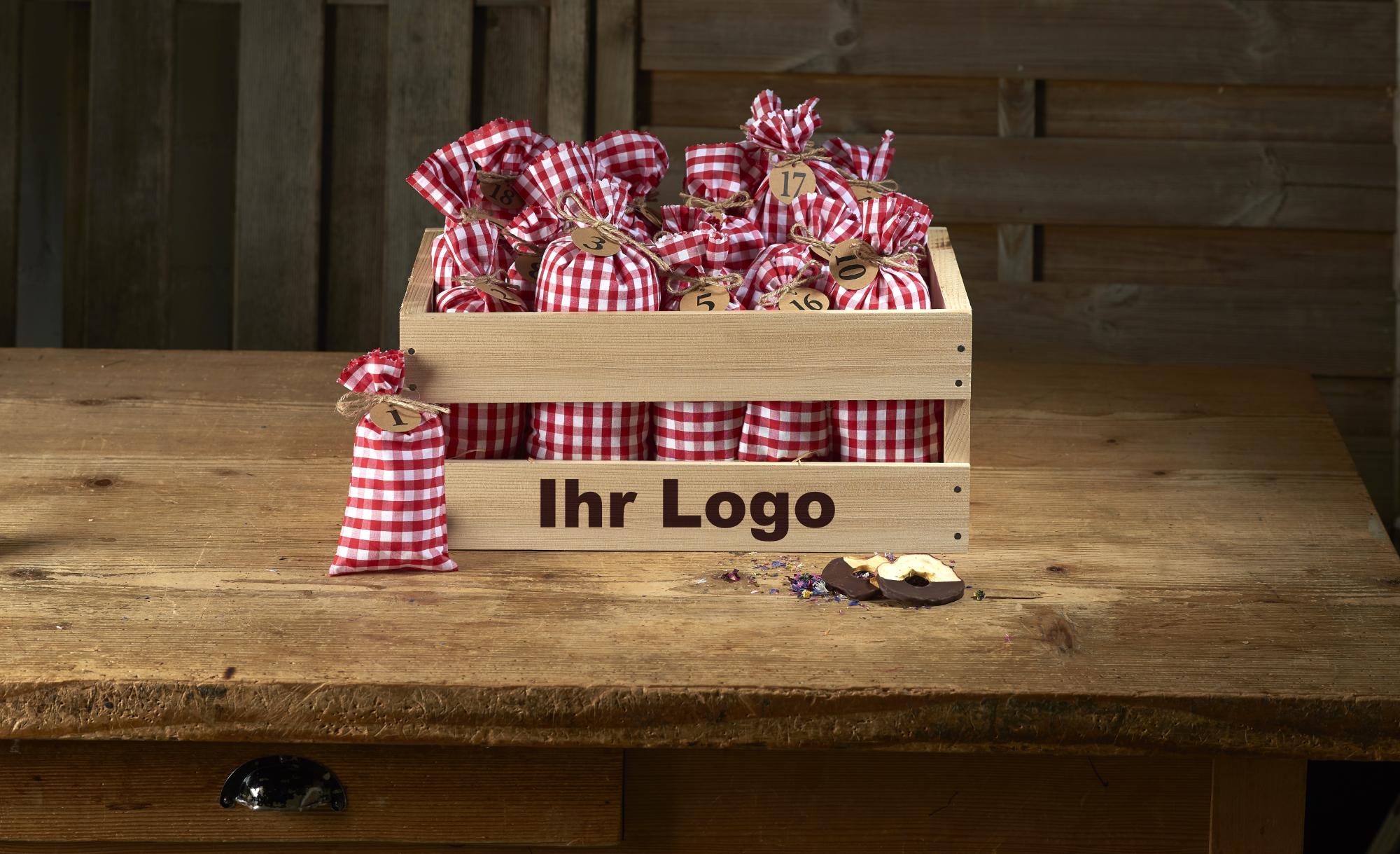 Mit unserer Adventskiste sorgen Sie für unvergessliche Werbemomente in der Adventszeit. Ob als Kundengeschenk oder Mitarbeitergeschenk: Wir stellen Ihre persönliche Adventskiste individuell nach Ihren Wünschen zusammen. Sie bestimmen Budget und Produkte – wir übernehmen das Verpacken und verschicken die Kisten auf Wunsch direkt an Ihre Kunden oder Mitarbeitenden.